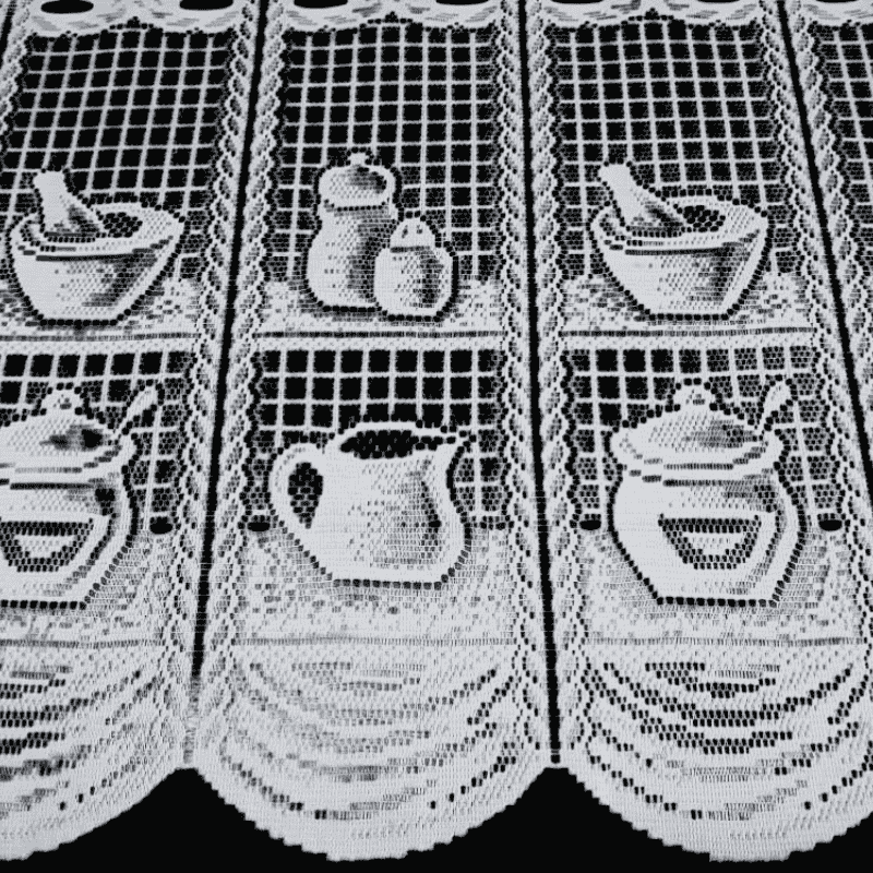 Jedná se o záclonu v metráži v. 45 cm. Záclona je s průvleky na tyč do průměru 2 cm.