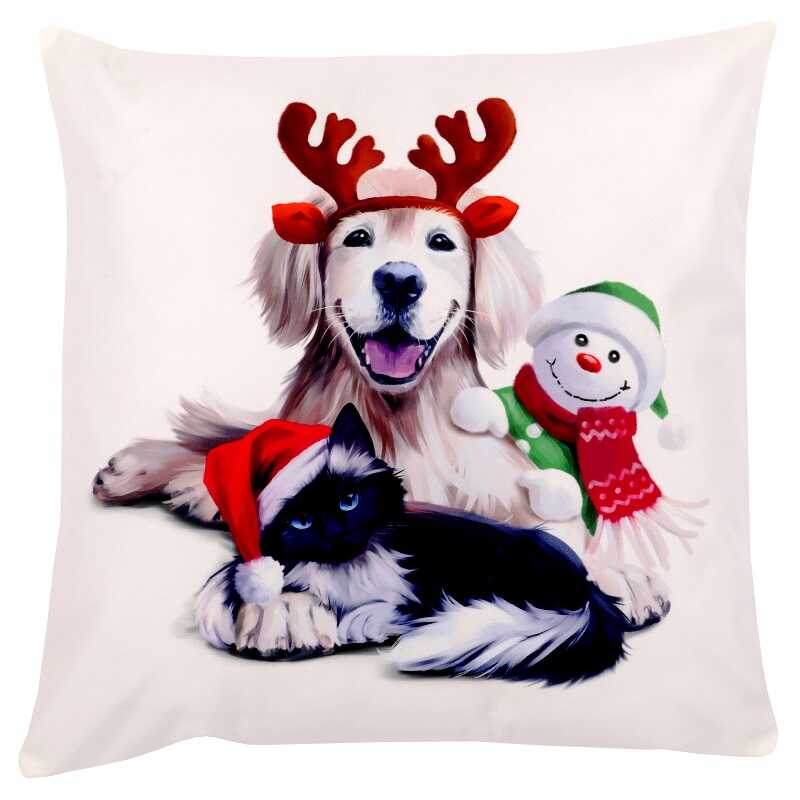 Tento povlak na polštář s vánočním motivem o rozměrech 45x45 cm je ideálním prvkem pro vytvoření sváteční atmosféry ve vašem domě. Vyroben z hebkého sametu a opatřen veselým potiskem psa, kočky a sněhuláka, přináší do prostoru radost a útulnost. povlak je vhodný nejen jako doplněk na sedací soupravy poblíž vánočního stromku, ale také do ložnic a dětských pokojů.