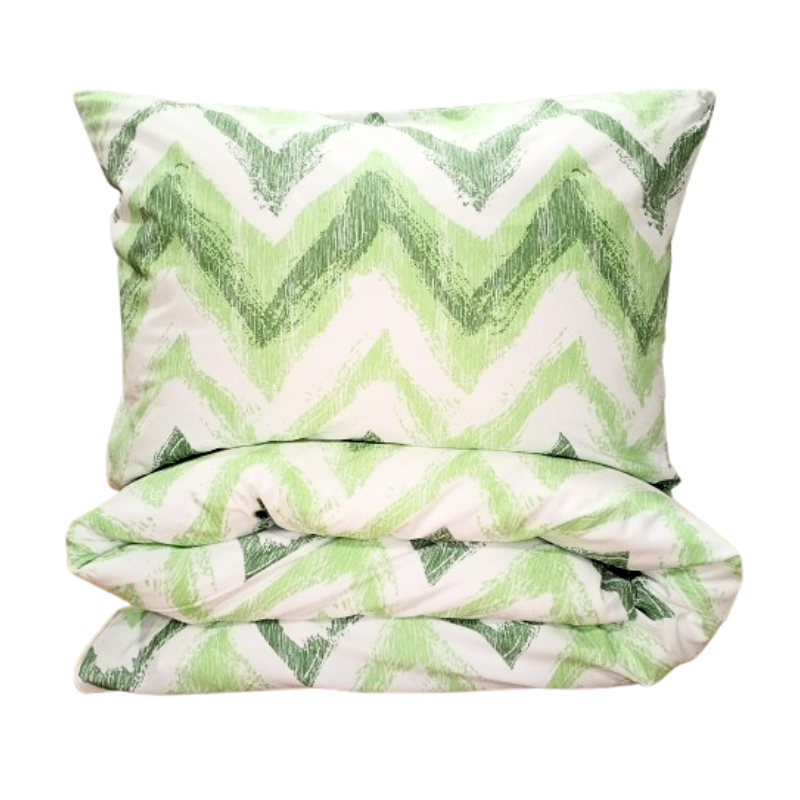 Luxusní bavlněné povlečení je laděné do zelené barvy se zajímavým vzorem. Souprava svým jednoduchým designem působí moderně a hezky doplní interiér Vaší ložnice a Vám se v něm bude příjemně relaxovat a spát.
