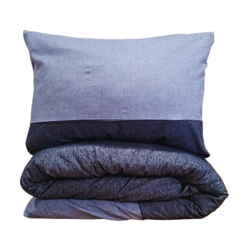 Flanelové hřejivé povlečení , povlak a přikrývka z jedné strany tmavě modrá a z druhé se světle modrým pruhem.