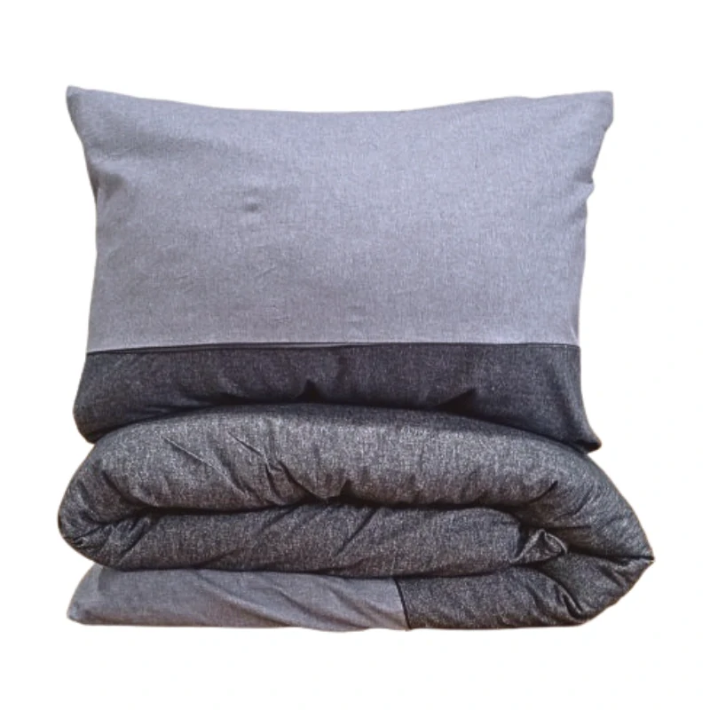 Flanelové hřejivé povlečení , povlak a přikrývka z jedné strany tmavě šedá a z druhé se světle šedým pruhem.