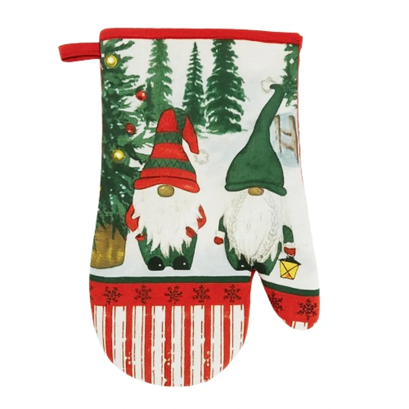 Vánoční kuchyňská chňapka neboli rukavice s originálním potiskem vyrobena ze 100% bavlny. Druhá strana je jednobarevná, bez potisku. Rukavice je vybavena jak magnetem, tak poutkem na zavěšení. Chňapka je praktickým pomocníkem při každém vaření. Je šitá v délce 28 cm.