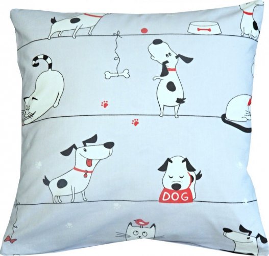 Originální dětský povlak na polštářek ze 100% měkčené bavlny. Materiál ve velmi vysoké jakosti, bavlna je jemná a hladká. Povlak je zdobený pejskem a kočičkou na šedém podkladu. Povlaky jsou ušity s praktickým zipovým uzávěrem.