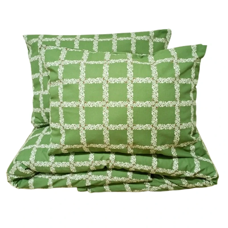 Tento model vnáší do interiéru energii a venkovský šarm. Zelená barva v ložnici navíc působí uklidňujícím dojmem. Pravidelný mřížkový vzor tvořený drobnými bílými kvítky na sytě zeleném podkladu. Působí velmi uspořádaně a svěže.
