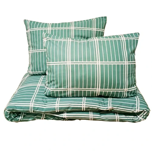 Dodejte své ložnici řád i styl. Toto povlečení v sytém smaragdovém odstínu kombinuje přísnou geometrii s uklidňujícím barevným tónem. Pravidelná bílá mřížka vytváří moderní rastr, který opticky zvětšuje prostor a vnáší do interiéru pocit čistoty a preciznosti. Vzor je minimalistický, svěží a nadčasový, pro každého, kdo miluje geometrické vzory.