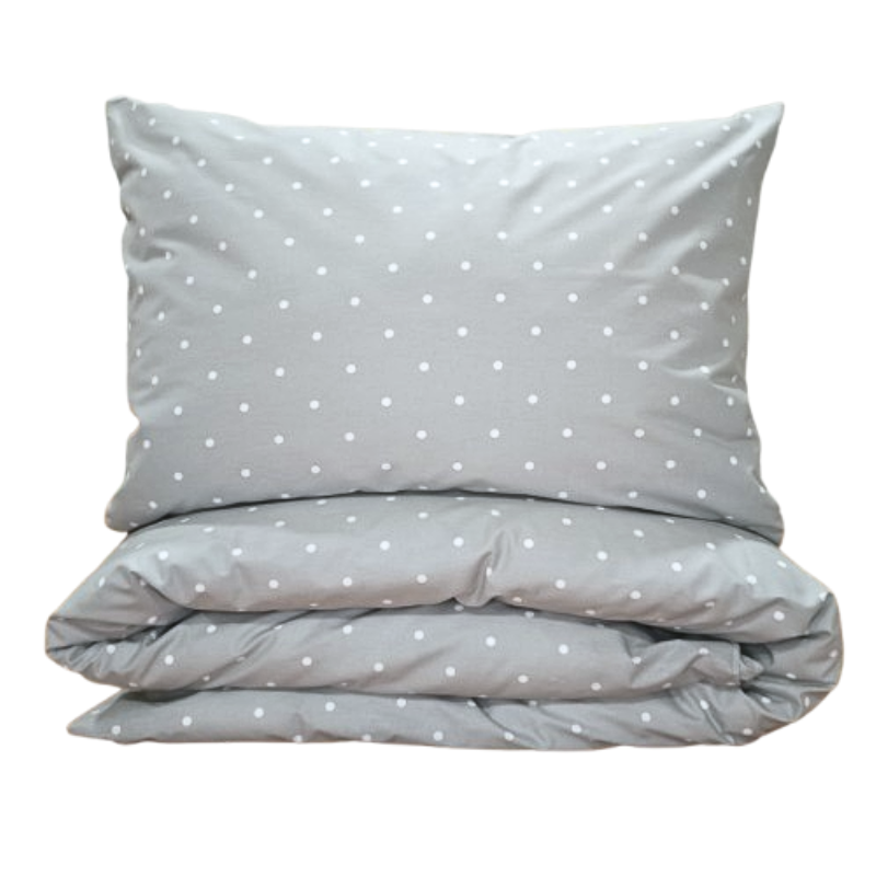 Hravý drobný puntíkový vzor v šedé barvě bude díky své jednoduché eleganci ozdobou každé ložnice.