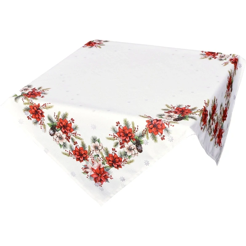 Tento elegantní vánoční ubrus je tím pravým prvkem, který z vaší prostřené slavnostní tabule v kuchyni či jídelně vykouzlí jedinečné prostředí pro setkání s vašimi blízkými na štědrý den a po celé vánoční svátky.