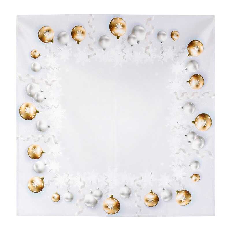 Tento elegantní ubrus s motivem stříbrných a zlatých ozdobných vánočních koulí je tím pravým prvkem, který z vaší prostřené slavnostní tabule v kuchyni či jídelně vykouzlí jedinečné prostředí pro setkání s vašimi blízkými na štědrý den a po celé vánoční svátky.